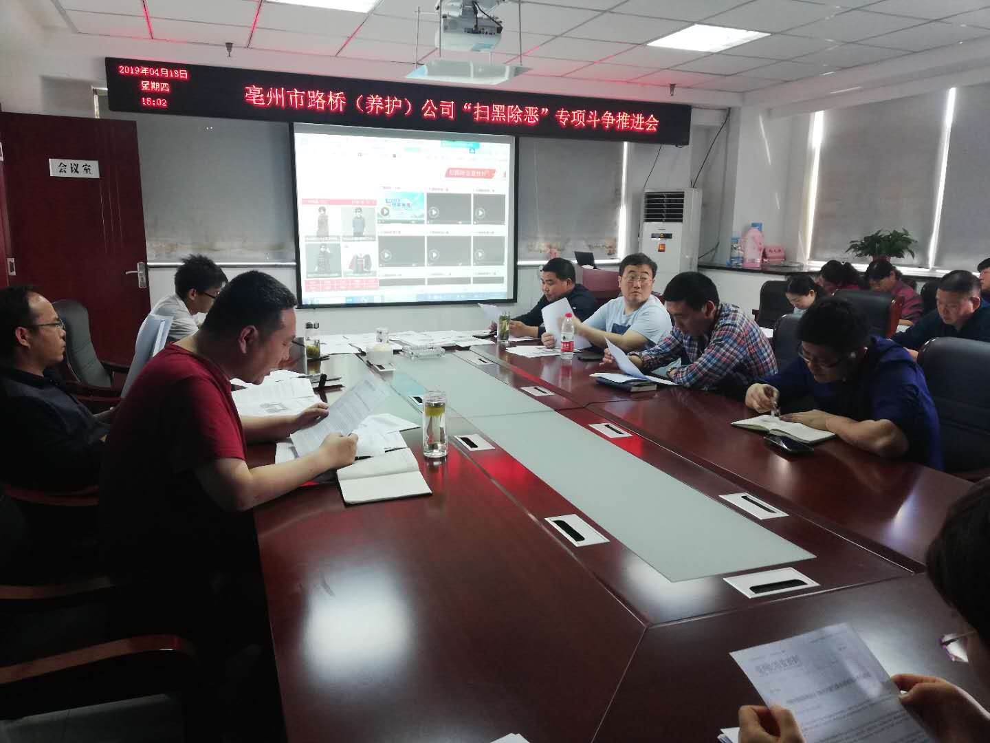 2019年4月19日下午,路橋、養(yǎng)護公司組織全體職工召開了“掃黑除惡”專項斗爭推進會。會議傳達了中共中央國務(wù)院關(guān)于開展掃黑除惡專項斗爭的通知及中央掃黑除惡第14督導(dǎo)組督導(dǎo)安徽省工作動員會會議精神;會議學(xué)習(xí)了掃黑除惡專項斗爭應(yīng)知應(yīng)會及國家明確“惡勢力”9條認定標準等;會議傳達部署了路橋、養(yǎng)護公司掃黑除惡工作方案;會上觀看了掃黑除惡專題宣傳片《掃黑除惡 亳州在行動》。最后,公司黨支部書記、負責(zé)人孫朋要求全體職工要認真貫徹落實中央、省、市關(guān)于掃黑除惡的文件、會議精神,深入摸排與公司生產(chǎn)經(jīng)營密切相關(guān)的黑惡勢力線索,以“零容忍”的態(tài)度進行“掃黑除惡”,對黑惡勢力露頭就打,發(fā)現(xiàn)一起上報一起,使廣大職工更大程度的獲得安全感、幸福感。